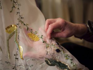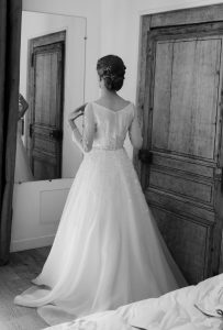 Le dialogue qui s’établit avec la future mariée me sert de fil d’Ariane pour ensuite m’appliquer à cette robe unique, aux broderies, aux applications, aux multiples petits détails qui signeront le style et la qualité de la création
