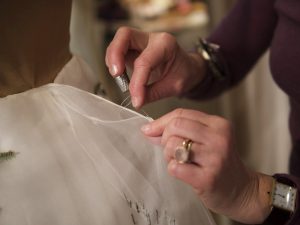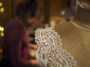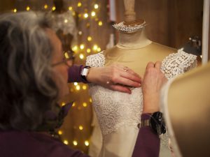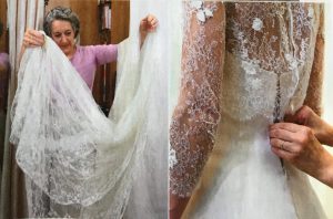 Les essayages se font au fur et à mesure de l'évolution du modèle avec les décors, les dentelles et les accessoires...